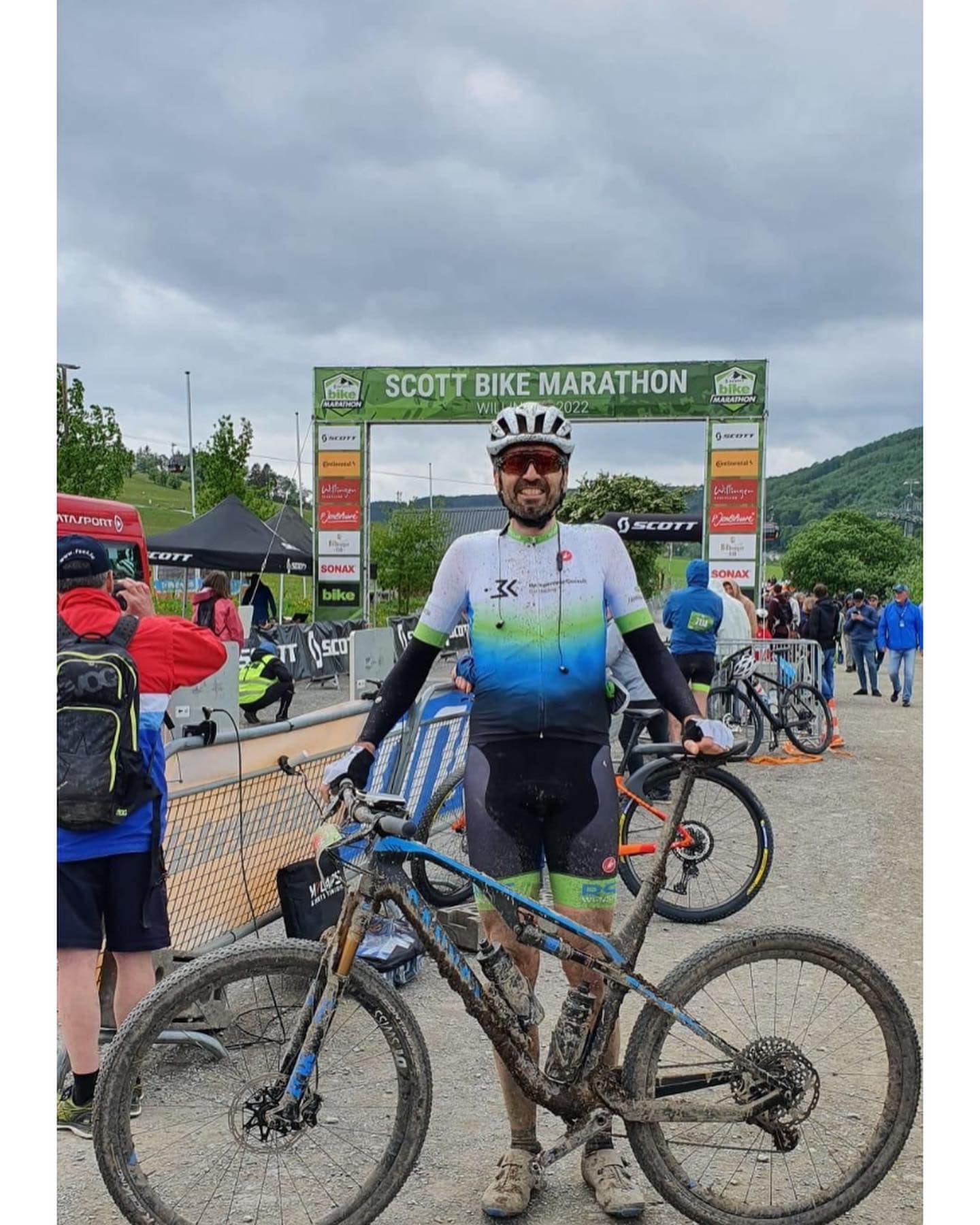 Alexander Frey war heute beim MTB Marathon eines der größten Events der deutschen MTB Szene des Continental BIKE Festival Willingen 2022 im Bikepark Willingen. Auf der 88 km langen Strecke mit 2600 Höhenmetern auf teils schwierigem Untergrund erkämpfte sich Alex im international hochkarätig besetztem Feld der ca. 1500 Starter einen 18. Platz in seiner Altersklasse in knapp unter 5 Stunden. Das Unwetter am Tag zuvor hatte den Untergrund noch herausfordernder gemacht, was Alex allerdings offenbar eher entgegen kam als vielen anderen Startern.