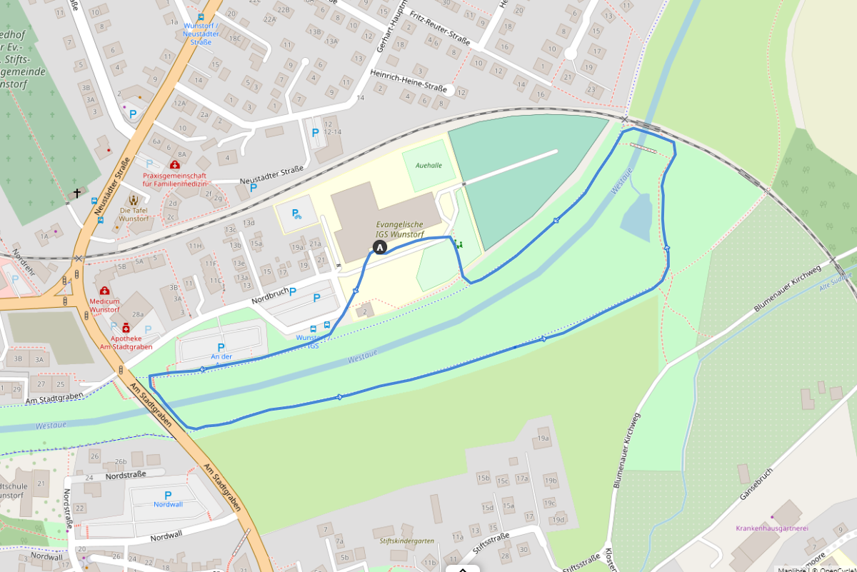 Strecke : Rundkurs über den Auedamm mit Start/Ziel auf dem Schulhof der IGS Wunstorf.