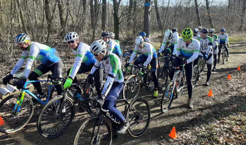 Beim zweiten Lauf zur diesjährigen Vereinsmeisterschaft war einiges los. Das fing schon bei einer rekordverdächtigen Teilnehmerzahl an, inklusive Gästen gingen 16 Fahrer an den Start. Angesetzt war das Rennen - bei bestem Winterwetter und guten, trockenen Streckenbedingungen - auf 40 Minuten. In den ersten Runden konnte man seine Uhr nach dem Führenden Fabian stellen, der immer knapp über 5 Minuten für die 2,4 Kilometer lange Strecke brauchte. Hinter ihm anfangs eine fünfköpfige Gruppe mit Christian H, Gast Hendrik, Alex, Jürgen und Jonas.
